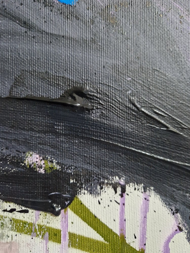 Chaque pièce est une création unique, réalisée à la main avec différentes techniques et matériaux. Le geste spontané, les superpositions de textures et l’intensité des couleurs confèrent à chaque toile une énergie singulière et une profondeur visuelle.